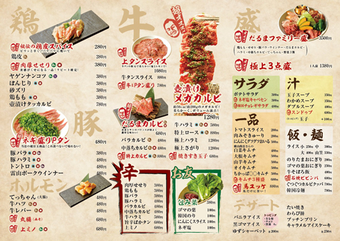九州産の黒毛和牛を使用しています。鶏280円〜豚380円〜牛480円〜ご用意しているリーズナブルな焼肉屋です。個室も2席あり、2.3階は掘りごたつの広々お座敷があります。名物はネギ盛りPタン、30㎝のメガカルビ、九州産の黒毛和牛カルビです。